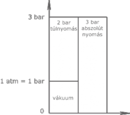 A túlnyomás a normál légköri nyomás fölötti értéket mutatja. Az abszolút nyomás értékébe a légköri nyomást is beleszámítjuk, tehát az abszolút nyomást 0 Pa-tól számoljuk.