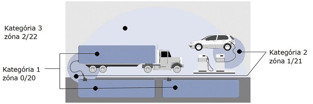 - Az 1. kategóriába tartoznak a gyártó által megállapított működési paraméterekkel összhangban működőképes és nagyon magas szintű védelmet nyújtó felszerelések. Az ebbe a kategóriába tartozó felszereléseket olyan területeken tervezik használni, ahol levegő és gázok, gőzök, permet vagy por keveréke által képzett robbanásveszélyes legkör folyamatosan, hosszú ideig vagy gyakran alakul ki.