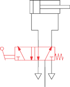 Alkalmazási példa: Egy kettősműködésű munkahenger vezérlése egy kézi működtetésű 5/2-es útszelep alkalmazásával.