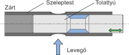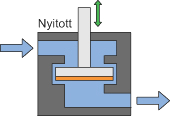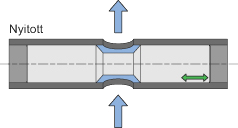 Az alábbi két ábrán a tolattyús szerkezetű szelep zárt és nyitott helyzete látható.
