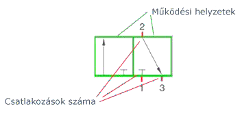 Csatlakozási szám és működési helyzet szerint: 3/2-es