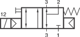 Monostabil szelep esetén a jelölés utal a szelep alaphelyzetbe-állítás módjára is: