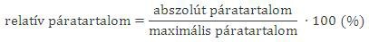 A relatív páratartalmat a maximális páratartalom százalékában adjuk meg.