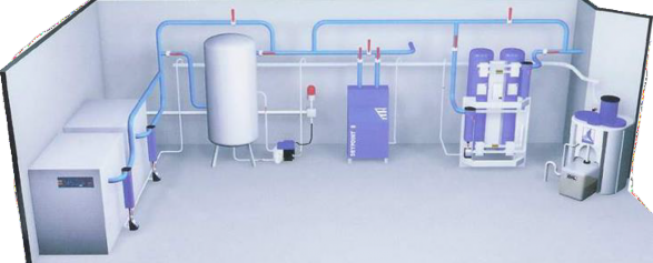 A sűrített levegő előállításához ez a "hozott anyag". Azonban a kompresszálás és a csővezetékekben történő szállítás folyamán még további nemkívánatos elemek is kerülhetnek a rendszerbe, míg a levegő felhasználásra nem kerül.